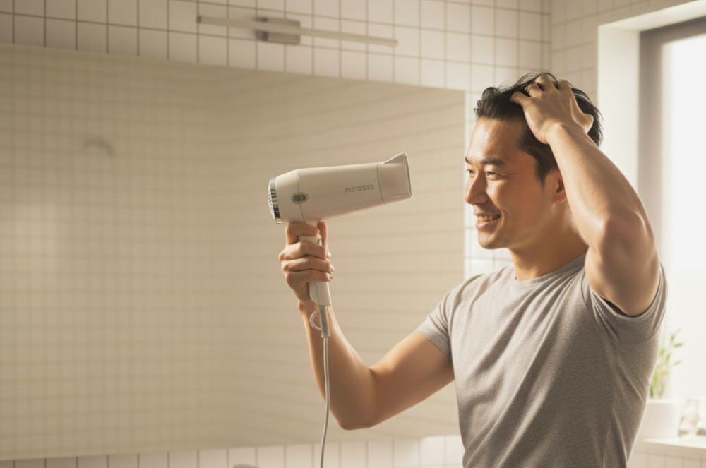 「早く乾かしたい」と、ドライヤーの熱風を頭皮に近づけすぎていませんか?ドライヤーの熱は頭皮を乾燥させ、皮脂の過剰分泌を招きます。
