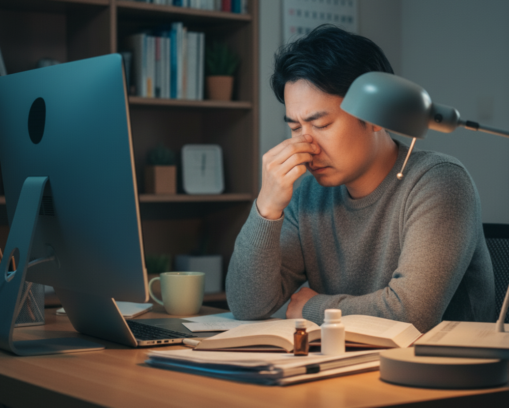 最近、手元のスマホの文字がぼやける、夕方になると目の奥が重い、仕事中に集中力が続かない…そんな経験はありませんか?