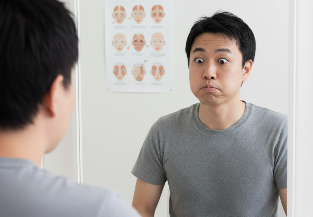 不機嫌に見える口角の下がりは、第一印象で損をします。「笑顔筋(大頬骨筋)」を鍛え、自然な笑顔をすぐに作れるようにしましょう。